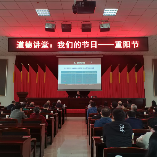 活动中,常务副校长李振华的“我们的节日——重阳节”给我们带来了一场精神盛宴,他从重阳节的由来、重阳节的习俗、国外的重阳节等方面进行了深刻阐述,并深情寄语在座的各位,一是要孝亲敬老,树立良好榜样;二是要加强学习,提高充实自我;三是要锻炼身体,拥有健康体魄;四是要热心公益,充分发挥余热。