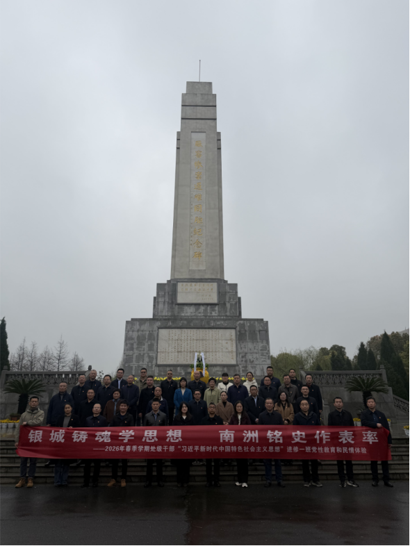 2026年3月26日,我校2026年春季学期处级干部“习近平新时代中国特色社会主义思想”进修一班开展党性教育和民情体验活动。活动以“银城铸魂学思想 南洲铭史作表率”为主题,组织学员深入基层、红色教育基地,推动理论学习与实践相结合,锤炼党性、体察民情。