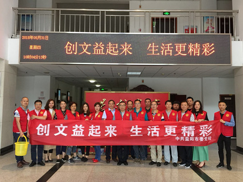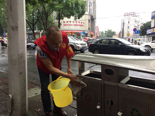 上午,在党校综合楼进行了简短的动员之后,全体成员随即开赴康富路和环保路开展活动,参加活动的同志们不顾绵绵细雨,有的提着水桶、有的拿着小铲子,擦拭垃圾箱和清除牛皮癣,有的拿着扫把和抹布,清理街道环境卫生,还有一些同志手持小红旗劝导车辆文明礼让行人、引导行人不闯红灯。雨越下越大,却丝毫没有影响大家服务热情,有的同志衣服都湿了,却全然不在意。纷纷表示:益阳创建全国文明城市,是件人人有责、人人受益的好事,我们要为全体市做好榜样,贡献自己的一份力量!
